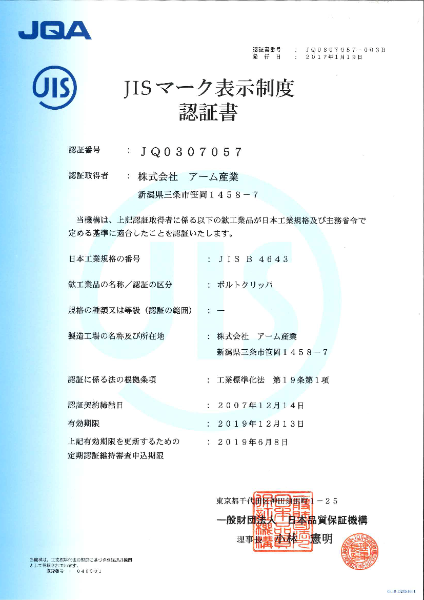 Japan Industrial Standard Certificate